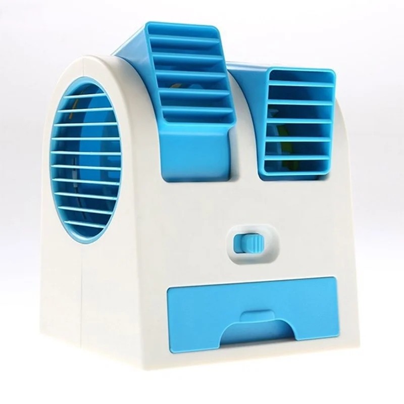 مینی کولر بسیار آرام و بی صدا ، سبک و قابل حمل امکان عملکرد با استفاده از شارژر موبایل یا پاوربانک یا USB لپ تاپ و کامپیوتر و یا حتی استفاده از سه عدد باتری قلمی 1.5 ولت می باشد این محصول دارای دو دریچه خروجی باد ، با قابلیت تنظیم زاویه می باشد ، این مینی کولر مجهز به مخزن در قسمت زیرین جهت ریختن آب و یخ است