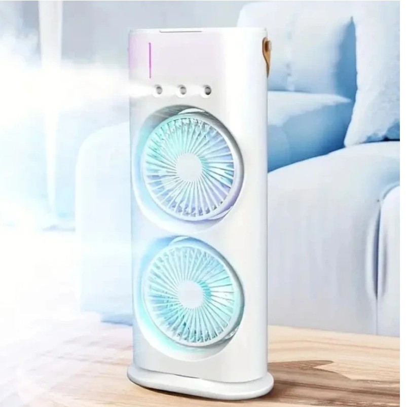 فن دو سر چند منظوره با قابلیت تنظیم سه سرعت باد و چراغ شب رنگی گرم، ایده‌آل برای استفاده در هر فضا. جهت باد قابل تنظیم و طراحی زیبا. هم‌اکنون خرید کنید و از خنکی لذت ببرید.
