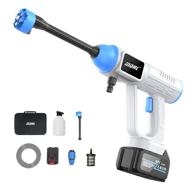 کارواش شارژی دوکاره مدل MDHL8109 با طراحی هوشمندانه که دارد شستشو اصولی ماشین را برای شما و بخصوص برای جاهایی که دسترسی به آب لوله کشی نیست را بسیار راحت کرده است اقلام همراه محصول شامل : پمپ آب ، فیلتر آب ، باطری لیتیومی قوی 48V ، شلنگ 6 متری ، شارژر مخصوص ، یک سری آب 6 حالته ، مخزن مواد شوینده ، رابط ها و کیف مخصوص است که همه اقلام همچنین کارواش داخل کیف قرار میگیرند .این کارواش دارای باطری قوی 48V است که قدرت پاشش آب را بسیار قوی کرده است ، این باطری بوسیله شارژی که همراه محصول ارسال میشود با برق شهری شارژ میشود این کارواش دارای قابلیت مکش قوی است و بدین وسیله میتوانید از آن حتی در مناطقی که به آب لوله کشی دسترسی ندارید استفاده کنید ( شلنگ کارواش را در آب داخل سطل و… قرار دهید ، آب بوسیله مکنده به داخل کارواش کشیده میشود ) این محصول دارای فیلتر آب است تا از ورود آودگی ها به داخل کارواش جلو گیری کند همچنین دارای مخزن شوینده است که میتوانید شامپو خودرو و یا هر شوینده مناسبی را داخل آن بدون مخلوط کردن با آب بریزید .) قابلیت دیگر این کارواش ، سری با 6 مدل پاشش متفاوت است که با توجه به نیاز خود میتوانید از هر یک از آن ها استفاده کنید .